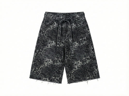 İnce kot desenli geniş uzun unisex şort