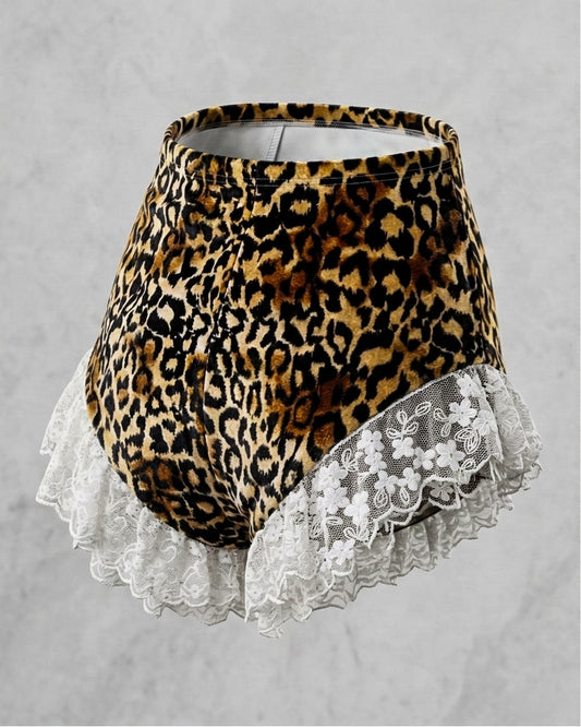 Leopar desen ince geniş paça pantolon