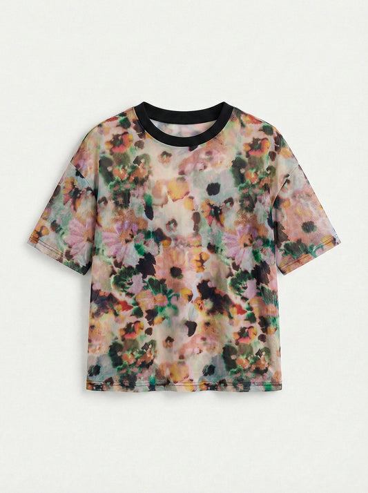 İndirimTransparan çiçekli unisex tişört