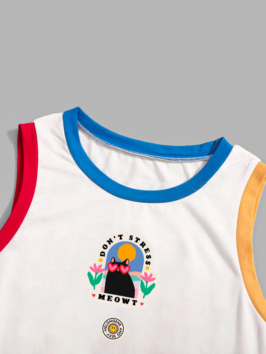 Don’t stress meowt / slim fit desenli tasarım beyaz crop top