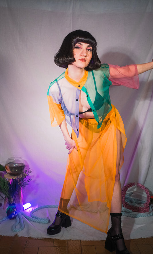 Çok renkli tasarım Tül gömlek & etek takım