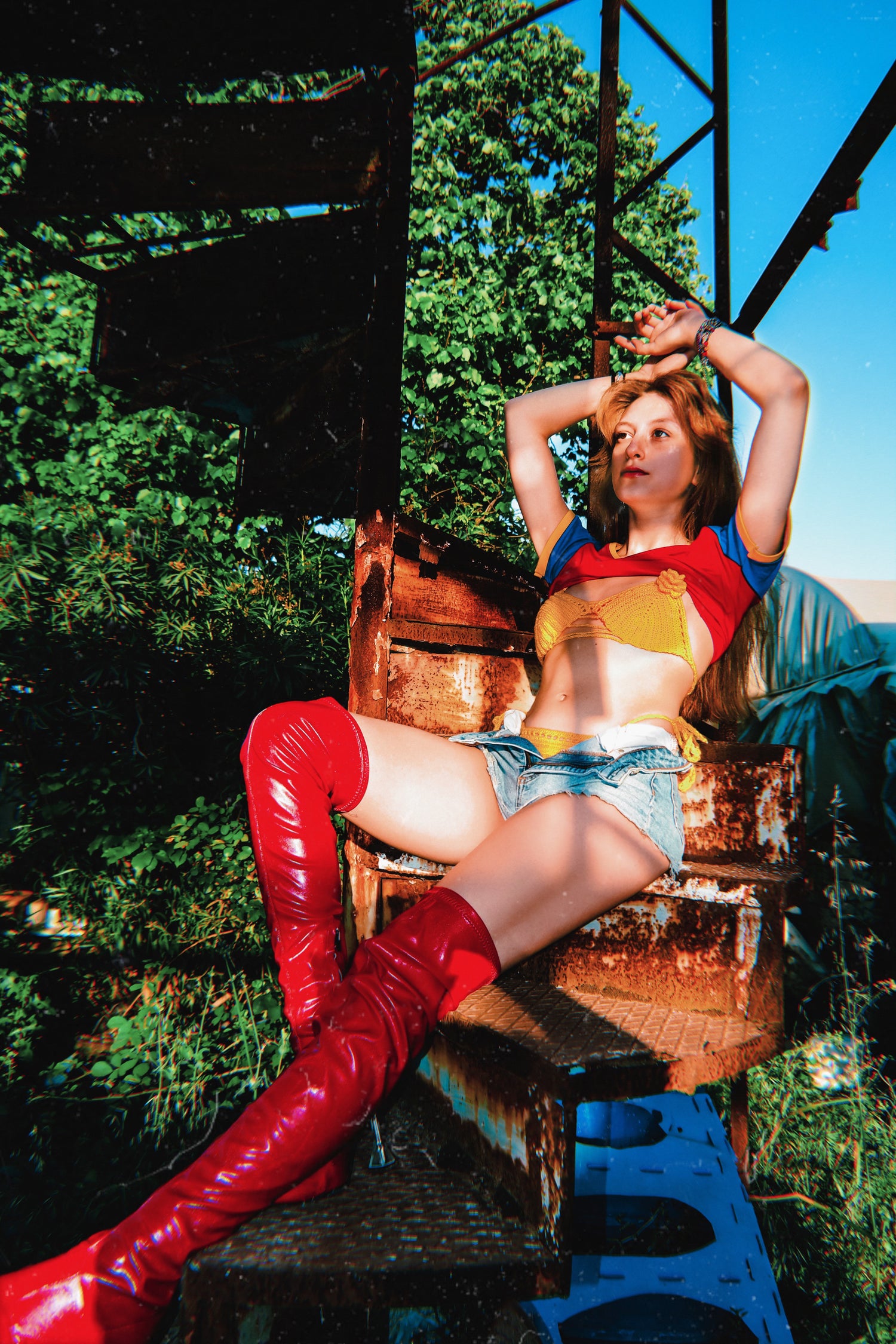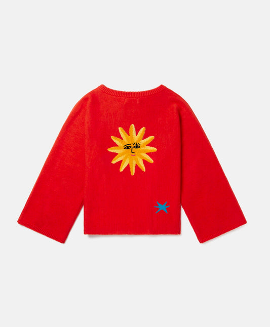 Özel tasarım sun and friends örgü kırmızı mavi sarı kazak