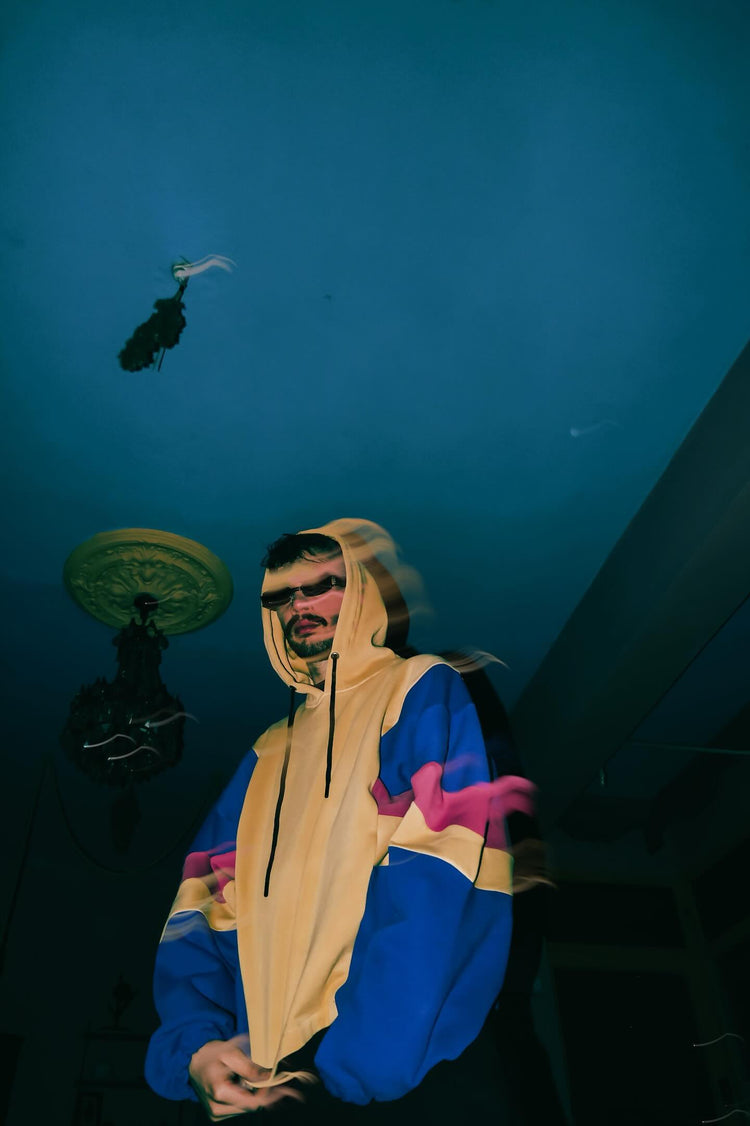 Özel tasarım renkli ama sarı oversize hoodie