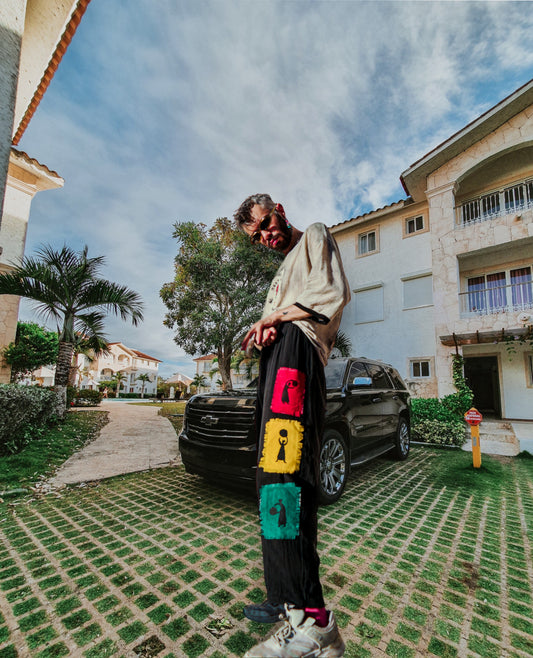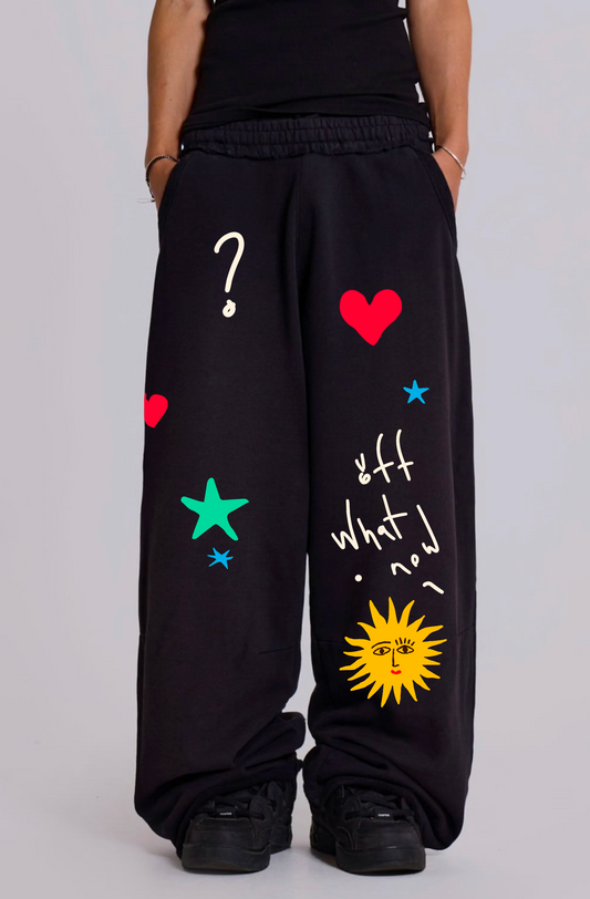 Siyah pamuk kalp yıldız güneş and what now baggy pantolon