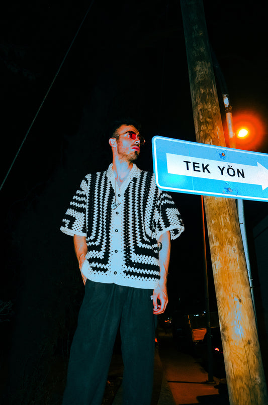 İndirimÖrgü siyah beyaz gömlek hey