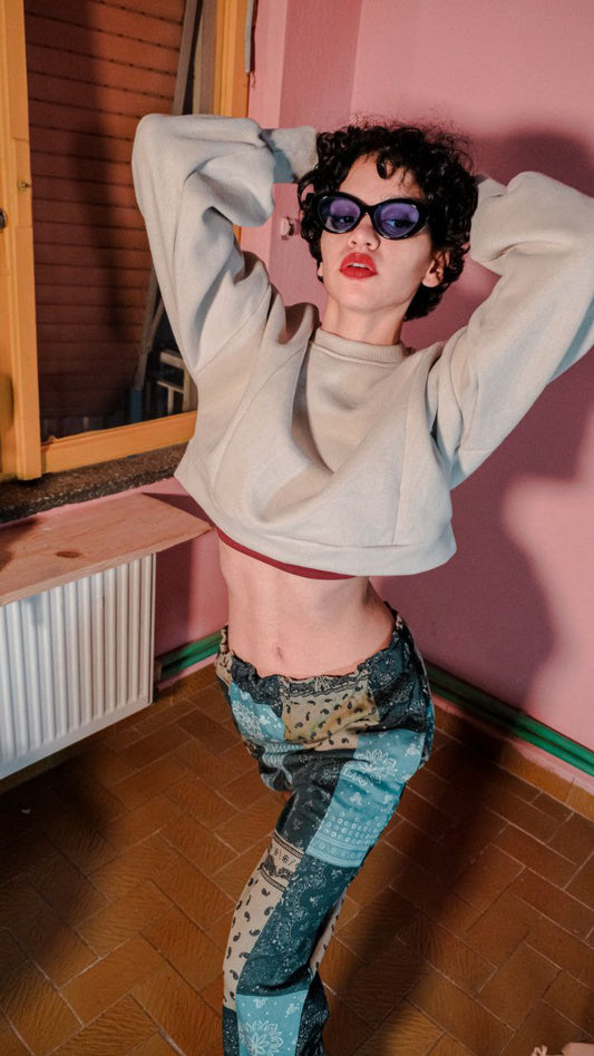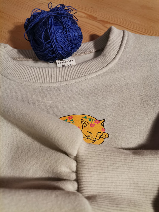 Bi kedi varmış dünyadan şok sıkılmış / oversize tasarım gri sweatshirt